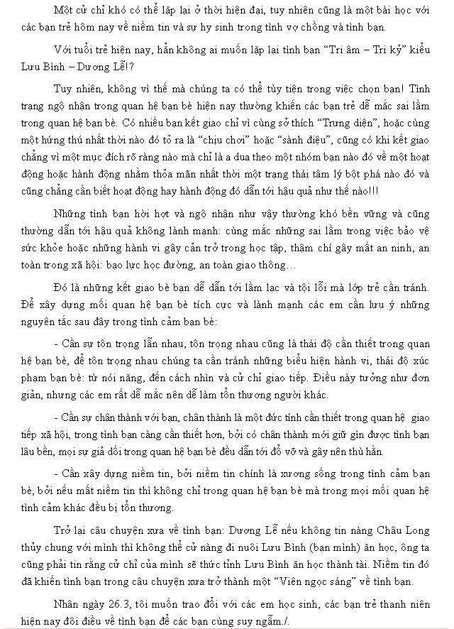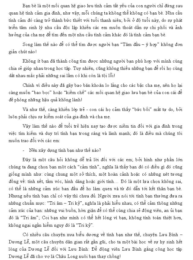 › TÌNH BẠN TRONG THANH NIÊN HIỆN NAY