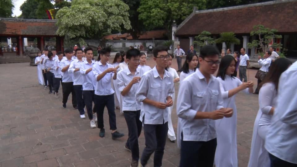 Thầy và trò trường Đinh Tiên Hoàng vào dâng hương tại Văn Miếu - Quốc Tử Giám