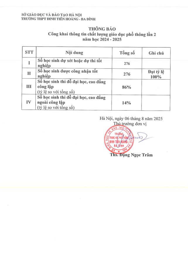 Công khai kết quả giáo dục năm học 2024-2025 và đội ngũ CBGV, cơ sở vật chất năm học 2025-2026