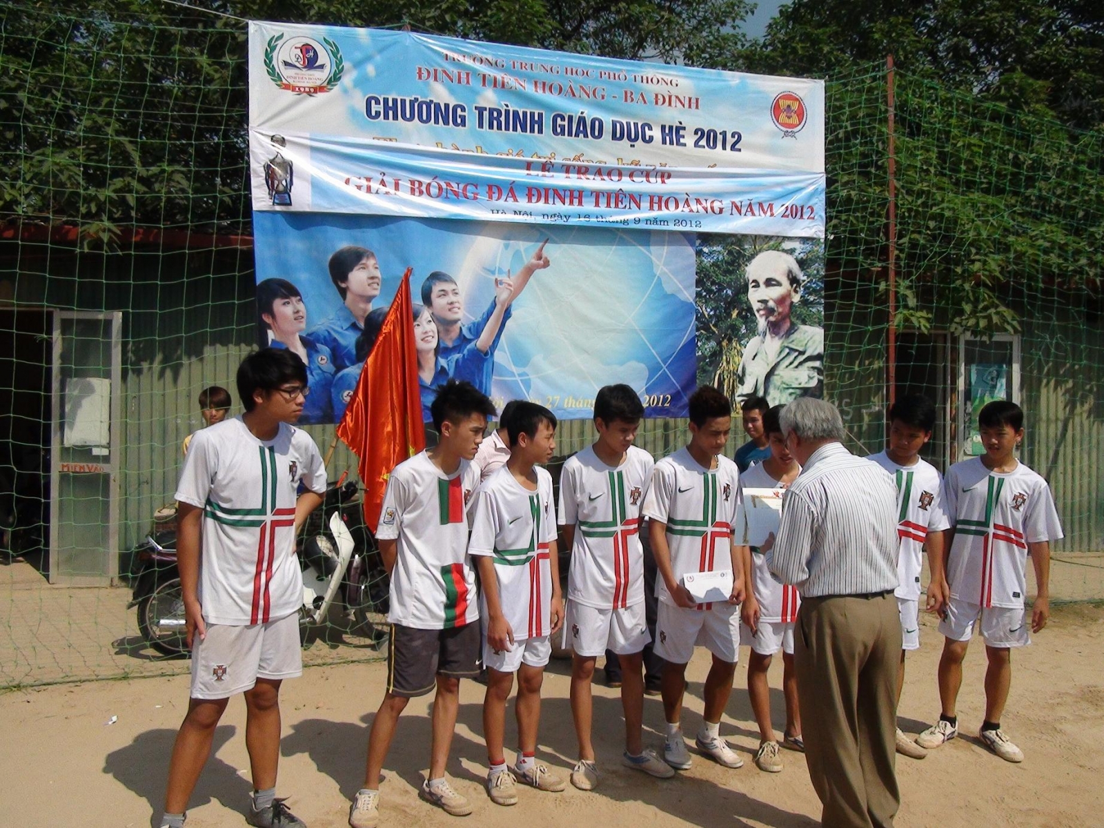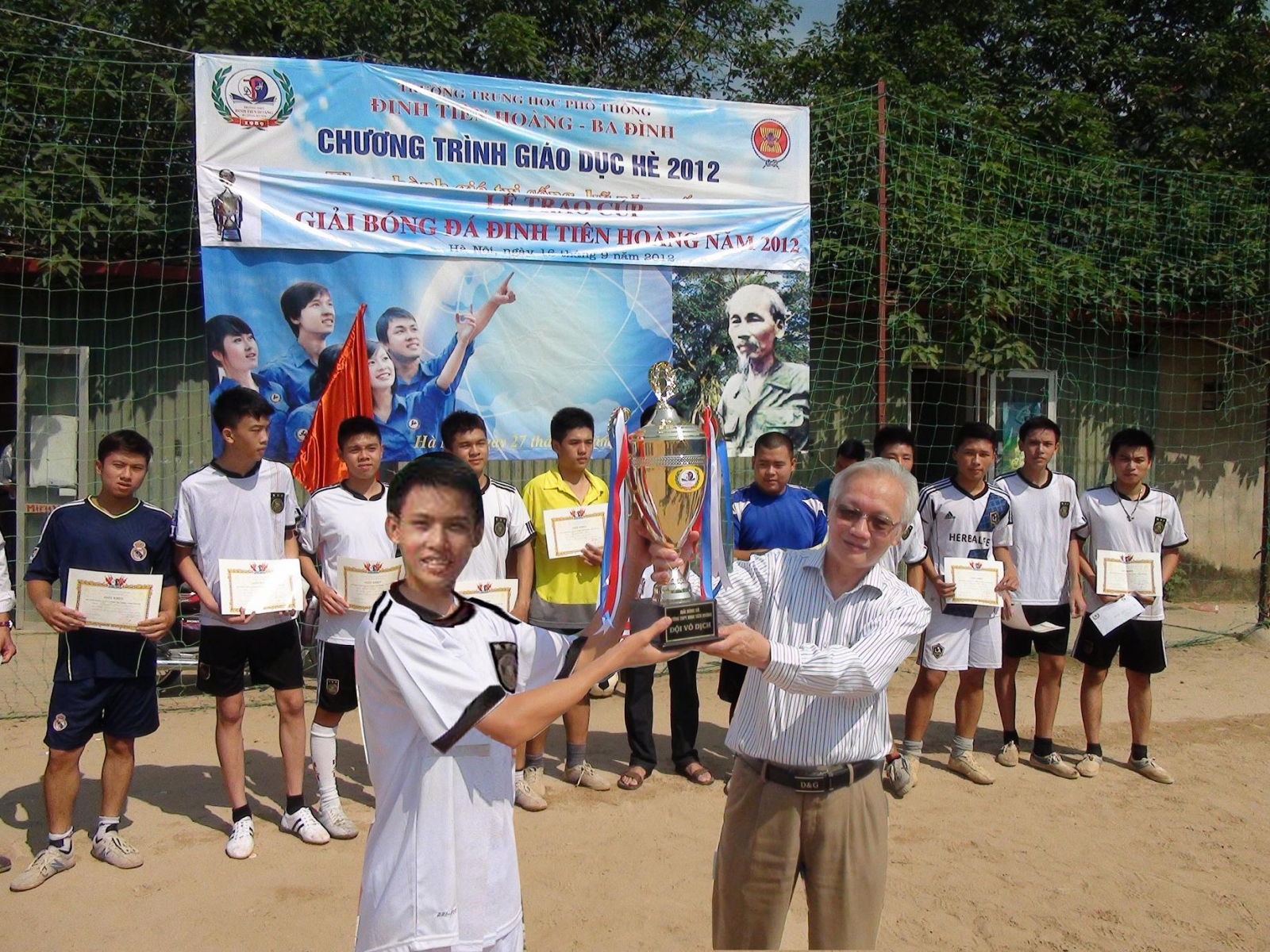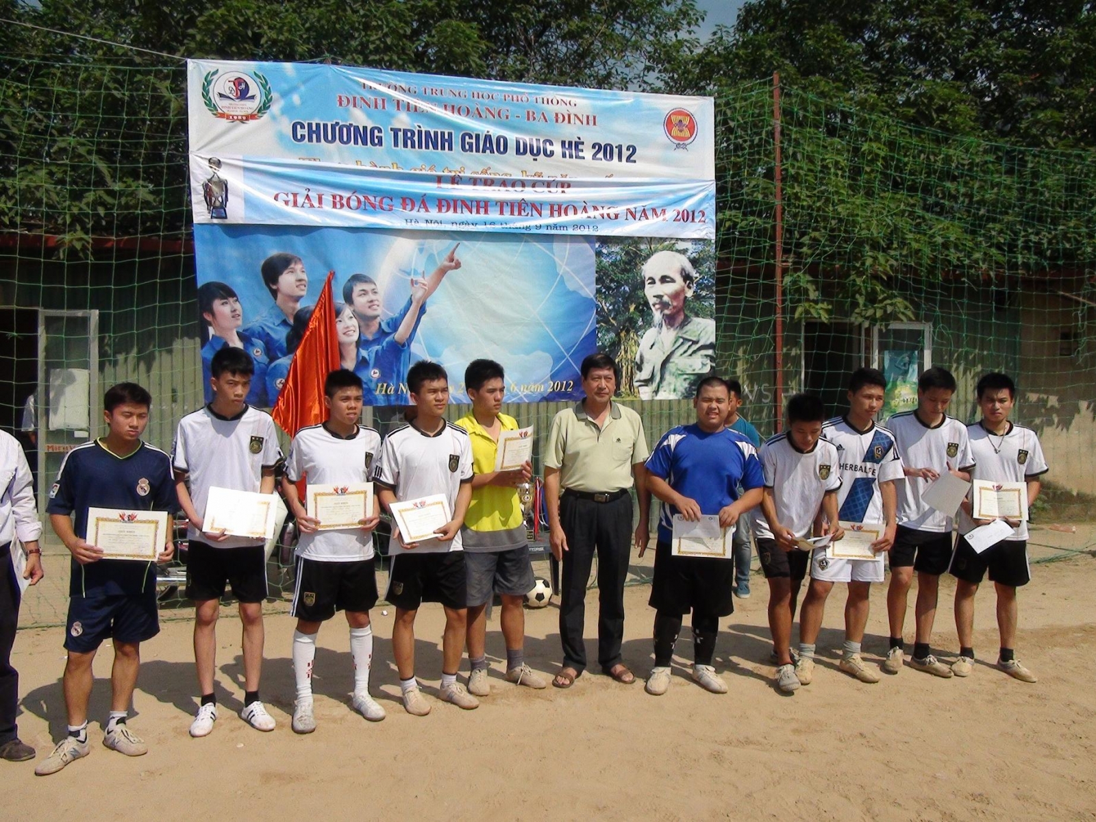 Thứ ba, 18.09.2012Ngày 16 tháng 9 năm 2012 vừa qua đã diễn ra trận tranh hạng 3,4; trận trung kết và lễ trao giải bóng đá trường Đinh Tiên Hoàng năm 2012. Đội vô địch là lớp 12D2+12E2, đội á quân là lớp 11B1, đội dành giải 3 là lớp 12A1+12C1, đội dành giải 4 là 11C1. Dưới đây là một số hình ảnh của giải đấu.